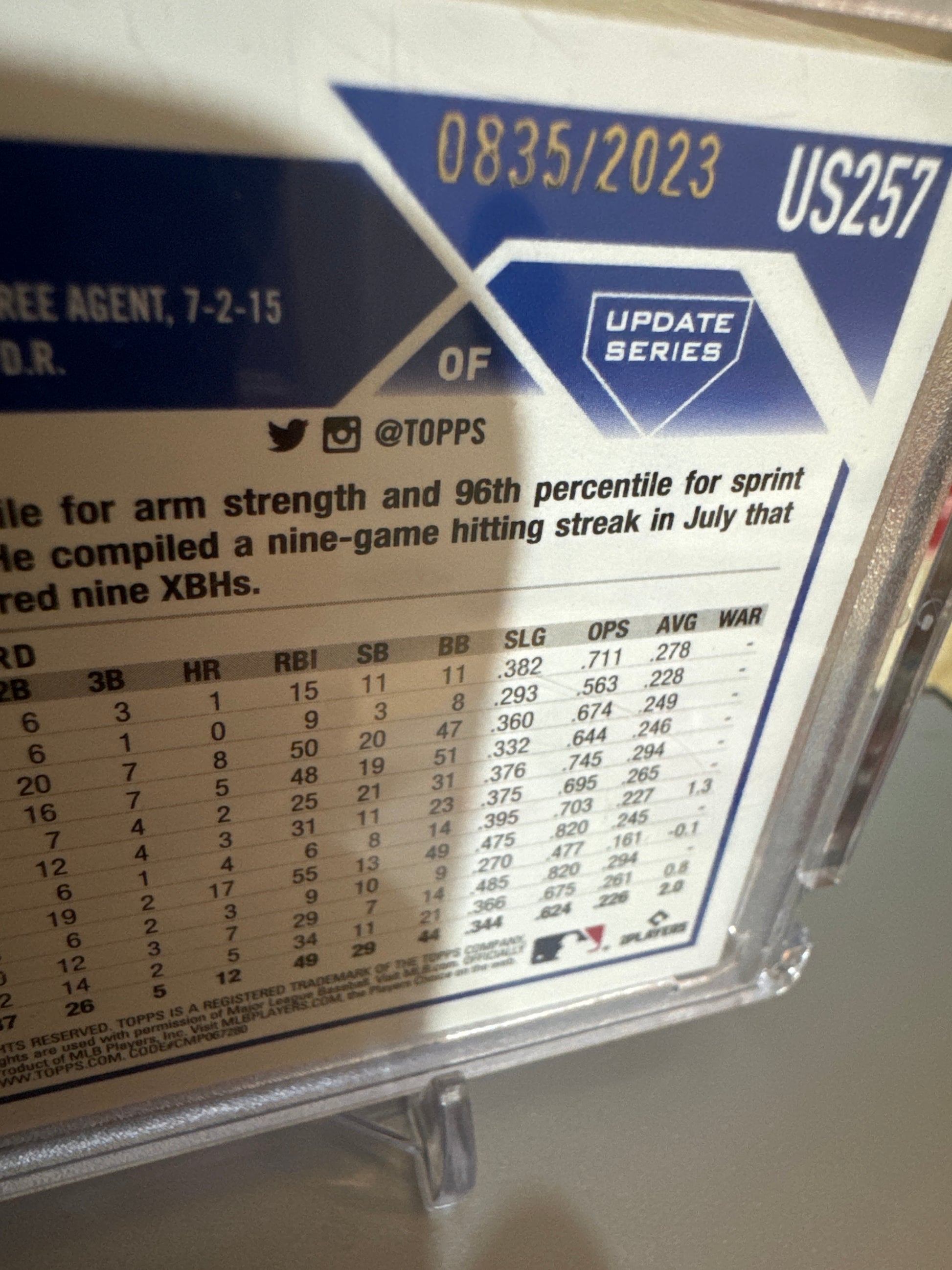 2023 Topps Update #US257 Leody Taveras. Numbered 835/2023